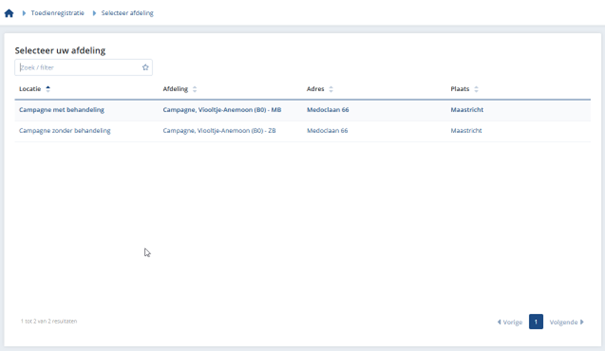 Voorbeeld werklijst afdeling met de nieuwe hybride SSO-koppeling:
