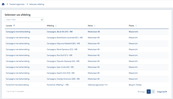 Daarnaast kan het ook voorkomen dat er in de lijst van afdelingen een afdeling van een andere locatie zichtbaar is (bijv. Fonterhof). Als je deze afdeling aanklikt zul je alleen de cliënten zien die je ook in ONS Nedap mag inzien.