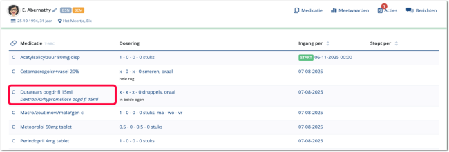 Vanaf 3 december 2025 wordt bij merkmedicatie in Medimo niet alleen de merknaam, maar ook de bijbehorende stofnaam weergegeven. Deze wijziging geldt zowel voor de toedienregistratie als voor de status.