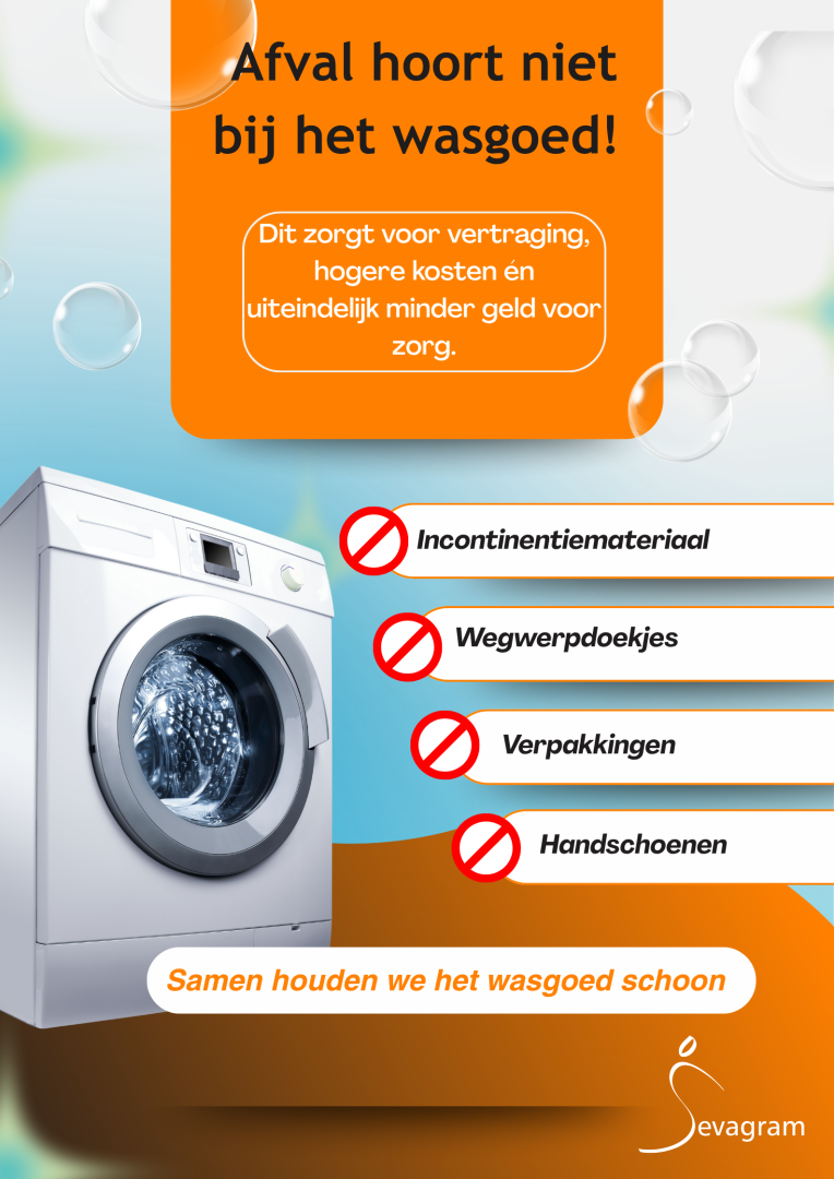De grootste verstoringen tijdens het wassen ontstaan doordat er afval, zoals wegwerpdoekjes, handschoenen en incontinentiemateriaal, tussen het linnengoed terechtkomt. Dit veroorzaakt niet alleen oponthoud in het wasproces, maar leidt ook tot extra kosten en verspilling van tijd en middelen.