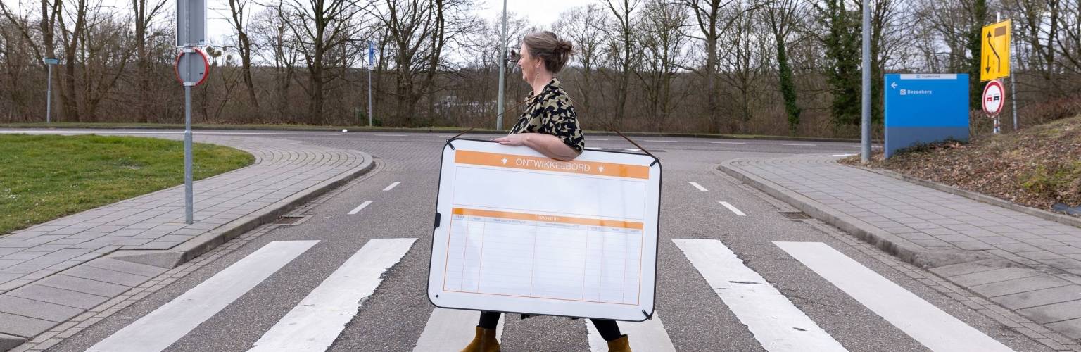 Anouk Martens, teammanager facilitair bij Scharwyerveld; “De afdelingen binnen facilitair, zoals de keuken, gasterie, receptie en het facilitaire team, werken op verschillende plekken binnen Scharwyerveld, wat het lastig maakt om als één team ontwikkelpunten op te pakken. Toch zie ik juist daar de meerwaarde van het Ontwikkelbord: mensen met elkaar in contact brengen en samen in gesprek gaan over wat écht belangrijk is, aldus Anouk.”